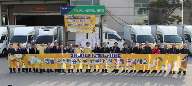 이어 “코로나19 방역 일선 현장의 의료진, 방역단과 환자, 취약계층 주민들이 기관지 건강에 좋은 나주배즙 드시고 힘내시길 기원한다”고 응원 메시지를 전했다.