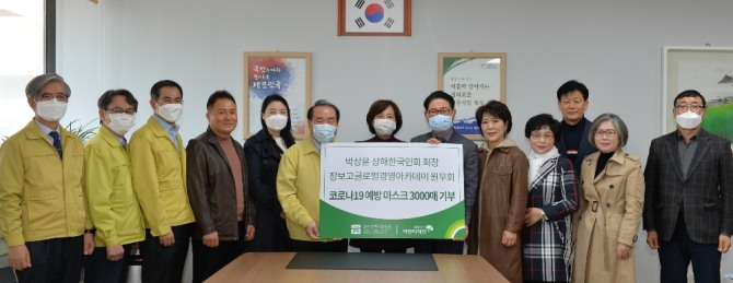 장휘국 광주광역시교육감이 18일 교육감실에서 상해한국인회 박상윤 회장과 장보고글로벌경영아카데미 원우회(초대회장 김갑수, 완도군향우회장)로부터 코로나19 대응을 위한 취약세대 마스크 3000매(성인용 1500매, 아동용 1500매)를 전달받았다. 전달받은 마스크는 초록우산 어린이재단(광주지역본부장 김은영)을 통해 취약가정 세대에 전달할 예정이다. /광주광역시교육청=제공