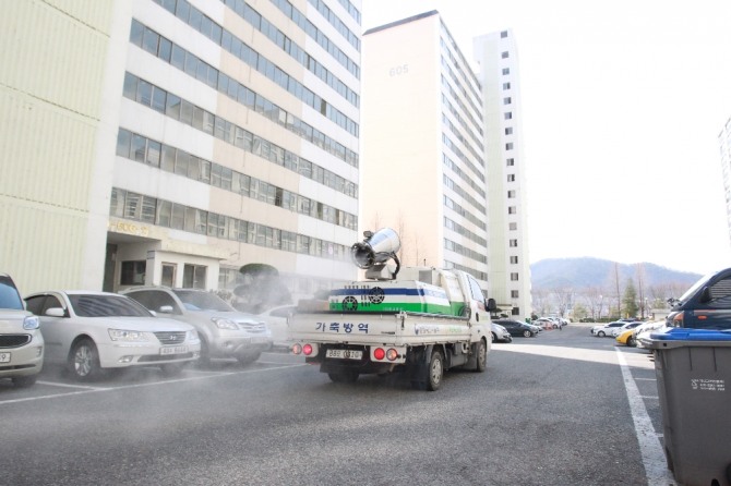 군은 확진자가 다녀간 의원과 약국 일대, 화순읍 주요 도로변, 아파트 등을 중심으로 매일 방역 소독하고 있다.
