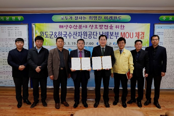 이날 협약식에는 신우철 완도군수, 한국수산자원공단 남해본부 민병주 본부장이 참석했다.