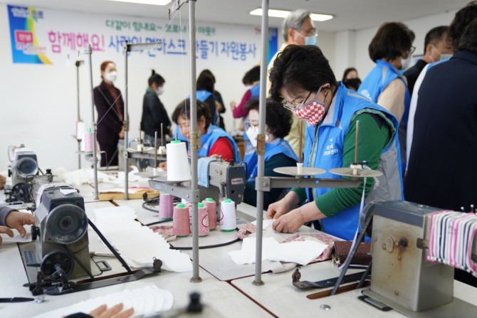 이미지 확대보기시는 20일부터 개인 재능기부자 및 봉사단체 회원들이 면마스크 제작을 시작했다고 밝혔다. 이 마스크는 기초수급자, 장애인 등과 같은 취약계층 중에서도 건강에 특별히 이상이 없는 사람들에게 지급할 계획이다.