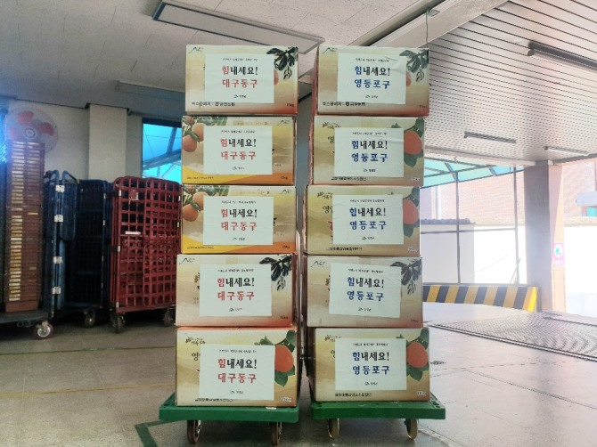 이미지 확대보기두 도시는 코로나19 확진자가 점차 늘어나며 방역행정에 어려움을 겪고 있는 상황으로 이에 영암군은 위문품으로 면역력 증강에 좋은 대봉감 가공품인 감말랭이 각 1,000포씩을 두 도시에 전달했다.