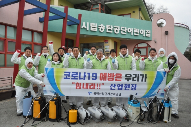 이날 평택산업단지관리공단 직원 18명이 방역소독기 4대, 분무기 5대를 동원 하여 산업단지내 송탄공단어린이집의 놀이시설, 5개 산업단지의 버스정류장 28곳, 체육공원 4곳의 운동시설과 공중화장실 등에 방역소독을 펼쳤다.