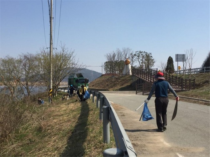 이미지 확대보기지난 11일 영산강 강변도로가 몽탄면 명산에서 나주시 영산포까지 개통됨에 따라 평일과 주말 자전거와 차량을 이용하여 영산강의 자연경관을 즐기는 관광객들이 늘었으며, 이에 영산강 전망이 좋고 잠시 쉴 수 있도록 정자가 설치돼 있는 석정포 주변에서 20여 명의 공무원 및 민간인이 참여하여 환경 정화활동을 실시하였다.