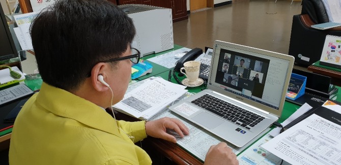 이미지 확대보기이날 화상회의는 교육 현장의 온라인 원격수업 환경, 원격수업 콘텐츠 확충‧장비 보강 등을 주제로 실시됐다. 온라인 개학 이후 발생할 수 있는 다양한 문제점과 해결 방안에 중점을 둬 학생들의 학습 공백 방지하고 학부모 불안‧염려를 최소화하기 위한 방안에 대해 논의했다.