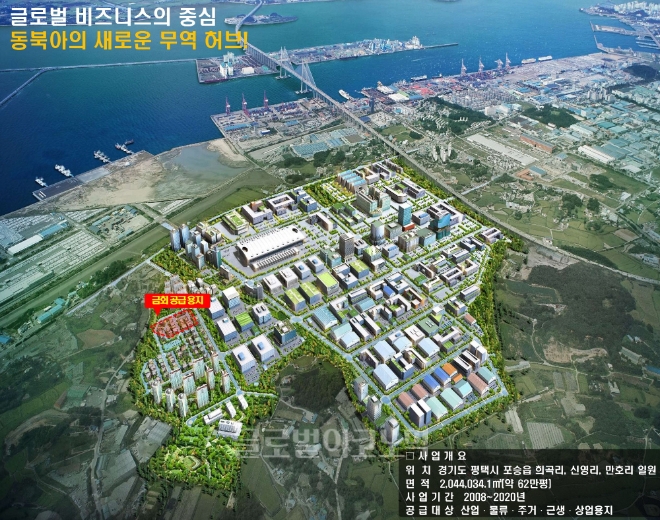 이미지 확대보기약 8천억 원을 투자하여 총 면적 204만㎡의 면적에 산업, 물류시설용지를 비롯한 주거시설 및 근린생활시설과 기타 지원시설을 개발할 계획이다. 사업 준공은 올해 12월 예정이다.