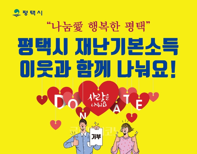 평택시는 24일 저소득 가구와 사회복지시설 등 코로나19로 어려움을 겪는 이웃들을 위해 평택행복나눔본부, 경기사회복지공동모금회와 함께 재난기본소득 기부 ‘나눔愛 행복한 평택’ 특별모금을 전개한다고 밝혔다.