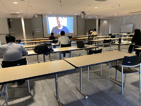 KOTRA 실리콘밸리 무역관의 IT Center에서는 입주 기업들을 대상으로 이벤트를 홍보했다. 이에 관심 있는 기업들이 마스크 착용 및 개인 간 거리를 유지한 채 대회의실에서 참관했다.