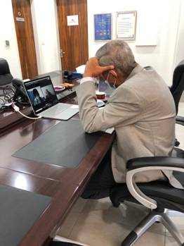 KOTRA 쿠웨이트 무역관 회의실에서 화상회의 진행중인 바이어