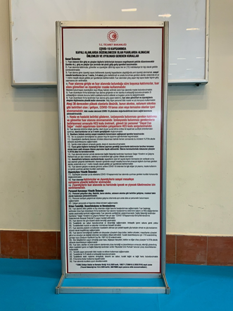 터키 보건부는 코로나19 전용 어플리케이션 Hayat Eve Sigar(이하 HES)를 통해 행동 메뉴얼 제공, 도시 간 이동 허가증 발급, 현황 업데이트 등의 서비스를 제공하고 있다. 올해 하반기에 개최되는 모든 전시회에는 입장 시 내외국인을 불문하고 HES Code(개인 ID번호 기준으로 발급하는 QR Code, 외국인의 경우 여권번호 사용 가능)를 사용해 입장하도록 하고 있다. 이 외에도 전시장 안전 수칙을 배포하고 전시장 곳곳에 수칙을 게시하고 있다.