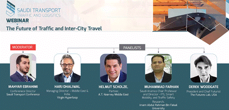 Riyadh Exhibitions Company(REC)는 지난 11월 24일 사우디 교통 및 도시 간 이동의 미래(The Future of Traffic and Inter-City Travel in the Kingdom) 웨비나를 개최했다. 웨비나는 총 75분 동안 진행됐으며, ARAMCO(국영석유회사) 스마트 모빌리티 수석자문위원이자 Imam Abdul Rahman 대학교의 Dr. Muhammad Farhan 교수, Virgin Hyperloop사 중동 및 인도지역 본부장인 Mr. Harj Dhaliwal 등 4명의 연사가 사우디 대중교통 현황, 스마트 모빌리티 산업 전망 등에 대해 발표 및 토론을 실시했다.