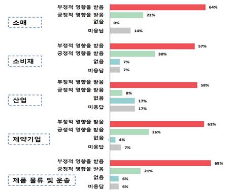 - 소비재, 물류, 제약사 등은 온라인 거래로 2020년 매출이 전년대비 유지 또는 증가 전망 -