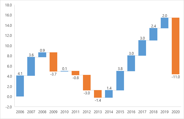 | 실질경제성장 | %, 전년비 | 2.0 | -11.4 | 5.7 |