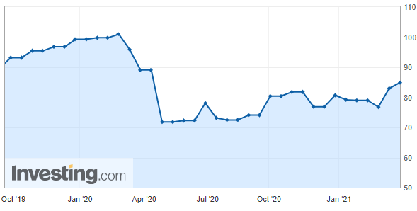 2021년 3월까지 미국 소비자심리지수