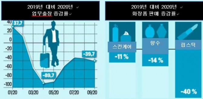 업무출장과 화장품 판매 증감률