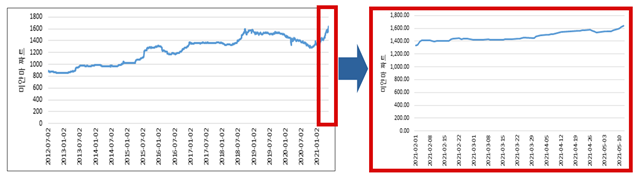 미얀마 환율 변동(2012-2021.5월)