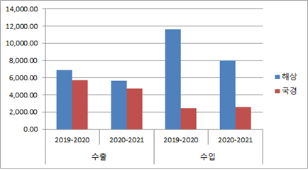 해상·국경 무역량 비교(2019.10.~2020.6. – 2020.10.~2021.6.)