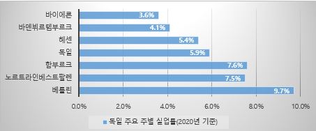 독일 주별 실업률(2020년 기준)