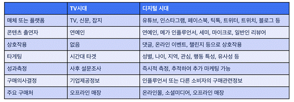 시대별 마케팅 요소 비교