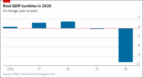 EIU는 2020년 실질 GDP성장률은 0.5% 수준이 될 것으로 전망하나, 리스크가 하방으로 크게 치우친 형태를 나타내는 바, 3년 연속 경제 위축이 예상된다고 밝혔다.