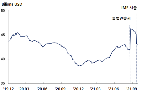 <2019년 12월~ 2021년 9월 아르헨티나 외환보유고 변화 추이>
