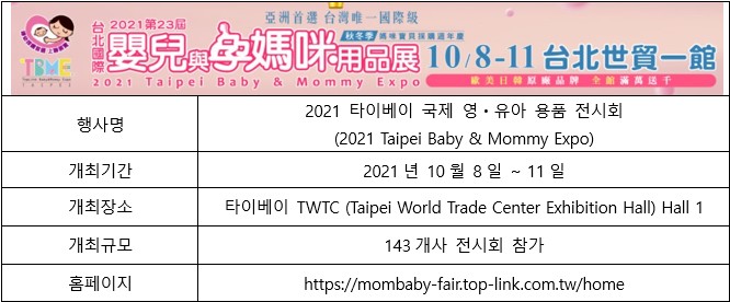 자료: KOTRA 타이베이 무역관 자체 조사, 전시회 홈페이지