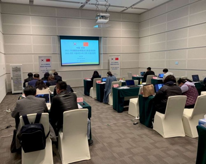 KOTRA 톈진 무역관도 한국관으로 입점하며 식음료전시회에 참가했다. 전시관 입구 정면에 한국관을 설치하여 전시관으로 입장하는 관람객들의 시선을 끌 수 있었다.KOTRA 톈진 무역관은 2019년 식음료전시회 이후 두 번째로 참가했는데 올해 전시회에서는 국내 53개 중소중견기업의 식품, 음료, 주류 등 백여 종의 제품을 전시했다. 코로나19의 확산으로 인해 국내기업이 직접 전시회에 참가하기 어려운 상황에서 KOTRA 톈진 무역관은 국내기업으로부터 전시제품을 우편으로 수령하여 제품을 한국관 내 전시했다. 또한 식음료 관련 중국 유망바이어 60여 개사를 초청하여 한국 기업들이 직접 바이어와 상담할 수 있는 온라인 수출상담회도 개최했다. 무역관은 사전에 국내업체 53개사의 상세자료를 제작하여 톈진뿐만 아니라 인근 베이징, 칭다오, 정저우의 바이어에게도 배포하고 제품을 소개했다.