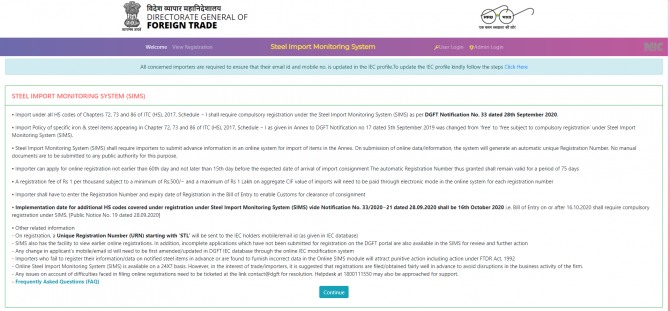 | 철강 수입모니터링제도(SIMS) | 철강제품 | 72류, 73류, 86류 | 2019.11.21. | http://dgftebrc.nic.in:8090/SIMA/ |