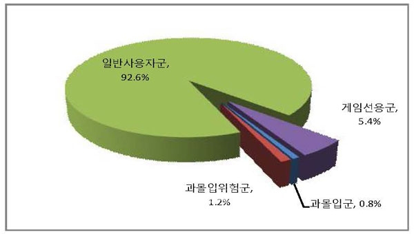 이미지 확대보기이는 지난해 6.5%로 보다 4.5% 낮아진 수준으로 게임과몰입으로 인한 부작용 완화를 위해 정부와 관계기관들이 노력한 결과로 보여진다. 그리고 게임을 긍정적으로 선용하는 청소년의 비율도 5.4%, 긍정적 영향도 부정적 영향도 미치지 않는 일반사용자군은 92.6%로 나타났다.