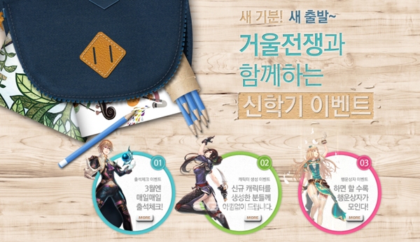 [글로벌이코노믹=노진우기자] 엘엔케이로직코리아(대표 남택원)가 개발하고 서비스하는 슈팅 RPG ‘거울전쟁-신성부활’이 3월을 맞이해 신학기 이벤트를 진행한다.거울전쟁 신학기 이벤트는 1일부터 진행된다. 먼저 출석체크 이벤트는 매일 유용한 아이템을 지급하는 이벤트로, 매 5번째 출석일에는 ‘바이아의 선물’, ‘30레벨 아이템 레시피’, ‘판 대상단의 상법서’ 등의 특별한 아이템을 보상으로 지급한다.