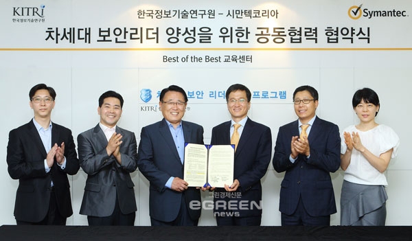 [글로벌이코노믹=노진우기자] 시만텍코리아(대표 정경원)와 한국정보기술연구원(원장 유준상)이 우리나라 정보보안 기술과 산업의 미래를 이끌어 나갈 우수 인재를 발굴, 육성하기 위해 손을 맞잡았다.양측은 지난 5일 KITRI 강남 교육센터에서 시만텍코리아 대표와 한국정보기술연구원 유준상 원장 등 주요 관계자들이 참석한 가운데 차세대 보안리더 양성 및 보안사업 협력에 관한 양해각서를 교환했다.