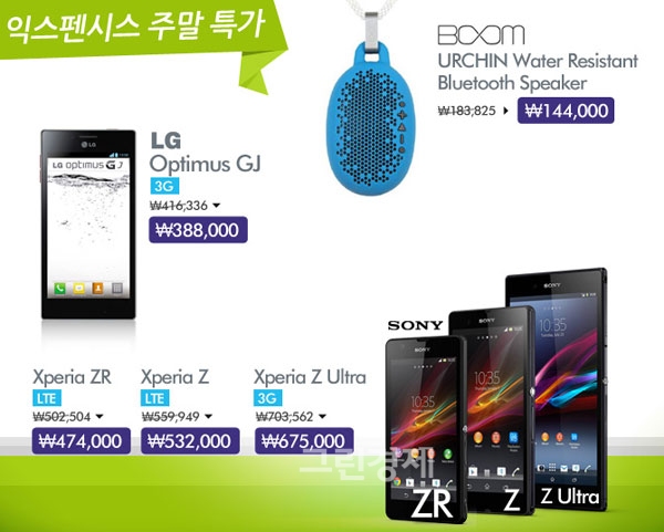 이미지 확대보기이에, 익스펜시스는 방수 스마트폰을 중심으로 방수 음향기기를 이번 주 주말 동안 할인한다.