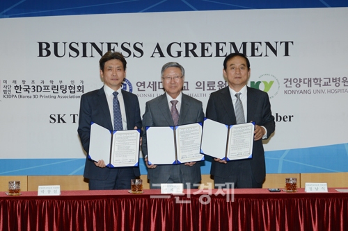 이미지 확대보기▲변재완SK최고기술경영자겸한국3D프린팅협회장▲박창일건양대학교의무부총장겸의료원장▲정남식연세대학교의무부총장겸의료원장 /