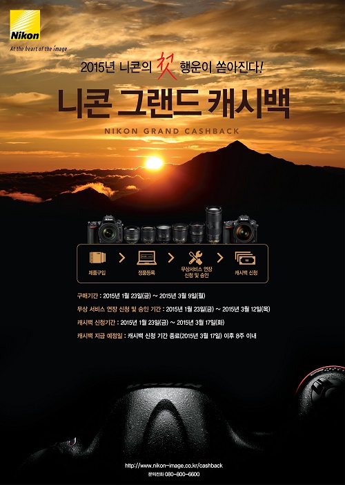 이미지 확대보기이번 행사는 신년 이벤트로 기획됐으며 참가자는 니콘의 최신 FX 포맷 DSLR 카메라와 NIKKOR 렌즈 구입시 최대 100만원까지 현금을 돌려받을 수 있다.