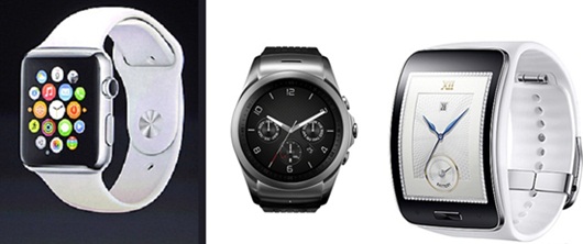 이에 비해 삼성의 기어S는 3G와 와이파이 기능이 있어 스마트폰을 휴대하지 않아도 전화통화가 가능하다. 일명 손목에 차는 스마트폰이다. 전화통화와 문자메시지 및 메일 송수신, 음악 감상, 웹서핑 등 스마트폰이 가진 기능들을 그대로 구현했다.