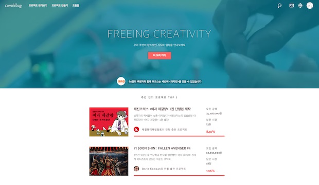 텀블벅은 창작자들이 새로운 작품을 시도할 때 필요한 자금을 모집하고 팬들과 연결될 수 있는 기술적인 환경을 만들어 왔다. 지난 2011년 3월부터 시작됐다. 선댄스영화제 대상을 받은 영화 ‘지슬’과 작년 독립영화계의 화제작 ‘족구왕’이 텀블벅을 통해 완성되었다.