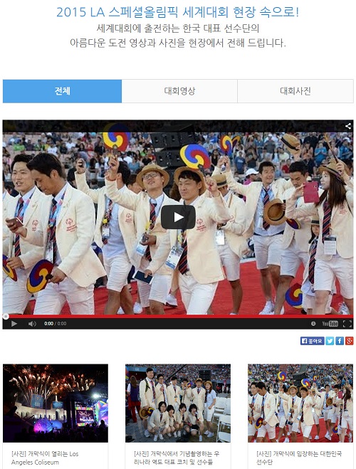 한국 대표 선수단을 후원하는 엔씨소프트문화재단은 스페셜올림픽 한국 홈페이지에 우리 선수단의 개·폐막식, 주요 경기, 메달 수상 장면 등을 담은 ‘2015 LA 현지 대회영상·사진’ 코너를 운영 중이라고 27일 밝혔다.