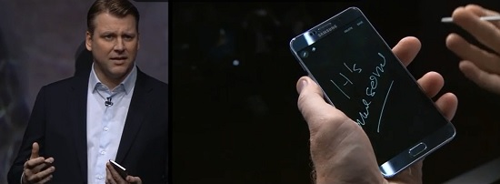 새로운 갤럭시노트5는 화면이 꺼져있을 때에도 S펜을 사용할 수 있다. 심지어 잠금 해제를 할 필요 없이 바로 화면에 빠르게 메모를 적을 수 있다.