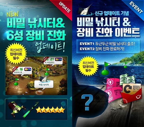 컴투스는 업데이트를 기념해 9월 30일까지 약 한 달간 이벤트를 실시한다. 이벤트 기간 동안 미네통카 호수, 마리아나 해구, 아마존 강, 지중해 각 지역의 비밀 낚시터에서 2단계를 통과하면 낚싯대 아이템을 지급하고 7단계까지 모두 통과할 경우 캐쉬를 제공한다.