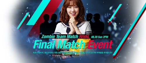 카스 온라인 좀비 팀 매치 ‘라이벌’의 파이널 매치는 30일(일) 오후 2시부터 서울시 서초구 넥슨아레나에서 진행되며, 모든 경기는 e스포츠 전문 온라인 채널 ‘eSportsTV(http://www.e-sportstv.net)’와 ‘네이버 e스포츠 섹션’ 및 ‘카운터스트라이크 온라인’ 공식홈페이지(www.csonline.co.kr)에서 생중계 된다.