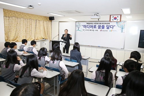 이미지 확대보기[글로벌이코노믹 김수환 기자] 방송통신위원회 최성준 위원장은 19일 인천시청자미디어센터가 자유학기제 미디어교육을 실시하고 있는 백령도 소재 백령중학교를 방문해 학생들을 격려했다.