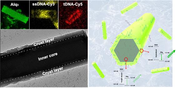 이미지 확대보기고려대 KU-KIST 융합대학원 안동준 교수(52) 연구팀은 휴대폰이나 태블릿PC 등 소형 디스플레이에 주로 사용되는 OLED소재와 생체분자의 특이적 인식 효과를 융합시킨 첫 사례로서 바이오-LED 현상을 최초로 구현했다. 이 논문은 네이처 커뮤니케이션즈 온라인판 1월 4일자에 ‘Bio-recognitive photonics of a DNA-guided organic semiconductor’라는 제목으로 게재됐다.