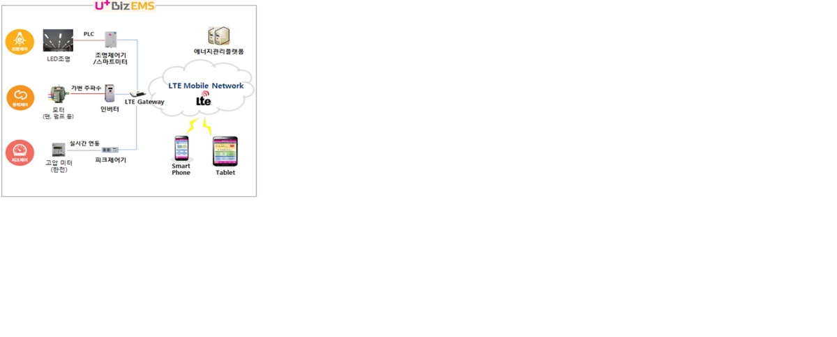 LG유플러스가 이번에 선보인 고품질 LTE 네트워크와 사물인터넷(IoT) 제어 기술을 활용한 건물/공장 에너지 절감 솔루션인 U+BizEMS는 PC와 태블릿은 물론 LTE 스마트폰을 통해 건물 내 조명, 공조 설비 등의 전력 사용량을 실시간으로 모니터링하고 조명의 밝기나 모터의 속도를 원격에서 제어해 에너지를 절감할 수 있다.