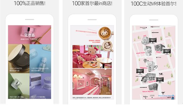 100C는 중국어 바이로 발음되는 100(百, bai)과 컬렉션(Collection)의 첫글자 C를 합친 것으로 엄선된 100가지 상품과 서울에서 인기 있는 상점 100곳의 정보를 매거진 스타일의 콘텐츠로 제공하는 모바일 쇼핑 서비스다.