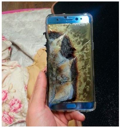 사진속 갤럭시 노트7은 스마트폰 왼쪽부분이 심하게 불탄 모습이다.