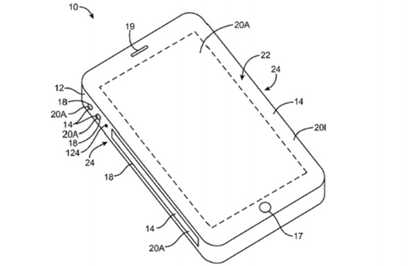 특허출원서는 단말기 주변 모서리(엣지)주변을 둘러싼 둥근 글래스를 가진 아이폰에 대해 설명하고 있다. 또한 액티브 버추얼 버튼이 포함된 글래스엣지가 ‘미니 플렉서블 엣지 디스플레이’ 역할을 하는지에 대해서도 자세히 설명하고 있다.