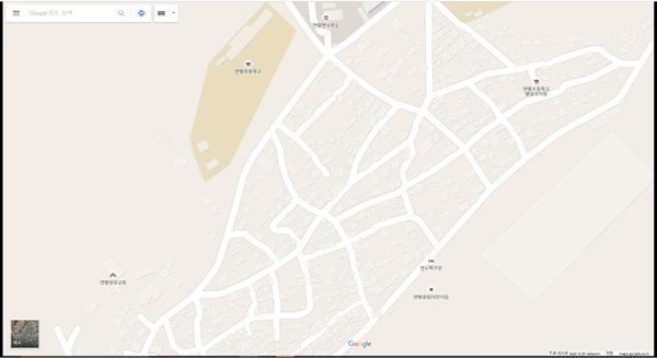 구글이 구글맵을 통해 제공중인 연평도 위성영상지도. 전문가들은 대한민국 전국지도를 포함한 구글맵 서비스 지도가 5000분의 1 지도를 제공받지 않으면 서비스할 수없는 내용이라고 지적했다. SK텔레콤 관계자도 골목길 등 세밀한 부분에 대한 5000분의 1 지도를 일부 제공했다고 인정했다. 명백한 실정법 위반이다.사진=구글맵