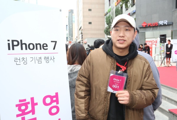 수요일(19)일부터 LG유플러스 서울 강남 직영점에서 기다린 끝에 아이폰7 1호 가입자로 선정된 최충식(서울 강남구, 22세)는 “이전부터 사용하며 느껴왔던 아이폰만의 인터페이스와 보안성이 좋아 아이폰7을 선택하게 됐다”며 “이번에는 그립감도 좋고 디자인이 멋진 아이폰7 제트 블랙 색상으로 구매했다”고 소감을 밝혔다.