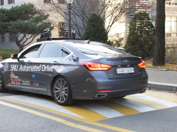 서승우교수는 지난 해 공개한 자율주행자동차 스누버1을 개량해 더 좁은 도로에서도 자율주행할 수 있도록 성능을 향상시켰다. 제네시스 모델에 ▲5㎝수준의 오차 정밀도를 보이는 고정밀 3차원 지도 기술 ▲초정밀 글로벌위치측정시스템(GPS) 기반의 고신뢰성 위치 파악 기술 ▲이동체 탐지 및 추적 기술 ▲충돌 위험 회피 기술 등이 적용됐다.