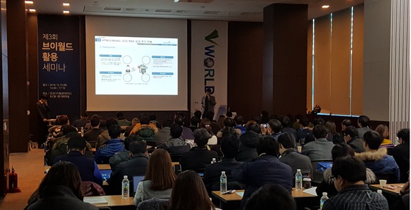 이미지 확대보기이날 브이월드 활용세미나는 2개 세션으로 진행됐다. 세션1에서는 ▲브이월드 활용기법 4종 발표 ▲민간과 공공 시스템 활용사례 소개, 세션2에서는 ▲ETRI 등 R&D연구단 및 사업단의 브이월드 관련 5종의 연구 성과 등 향후 적용방향에 대한 설명이 이어졌다.
